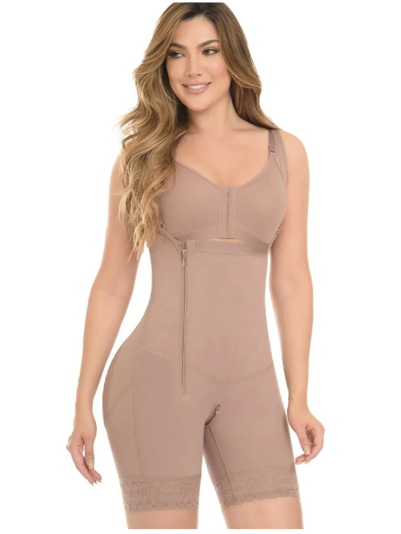 It features a full perianal closure for comfortable bathroom use and an ultra-high-rise bottom , perfect for gluteal lipotransfers . Its side closure makes it especially suitable for postpartum cesarean sections and abdominoplasty procedures , protecting the scar. This model is not suitable for BBL .