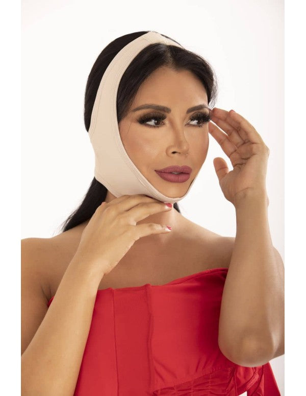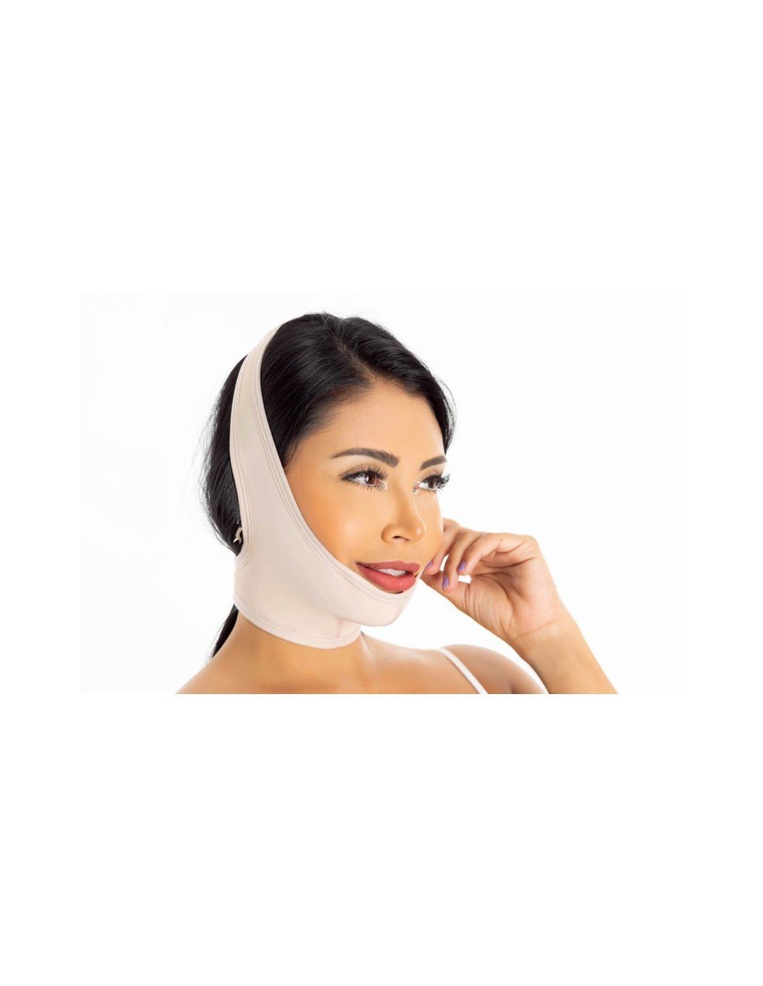Su diseño anatómico brinda soporte firme y seguro en la zona del mentón, sin causar incomodidad. Fabricada con materiales suaves y resistentes, ofrece una compresión equilibrada que favorece la recuperación en menos de 10 días, ayudando a mantener la forma y definir el contorno facial.