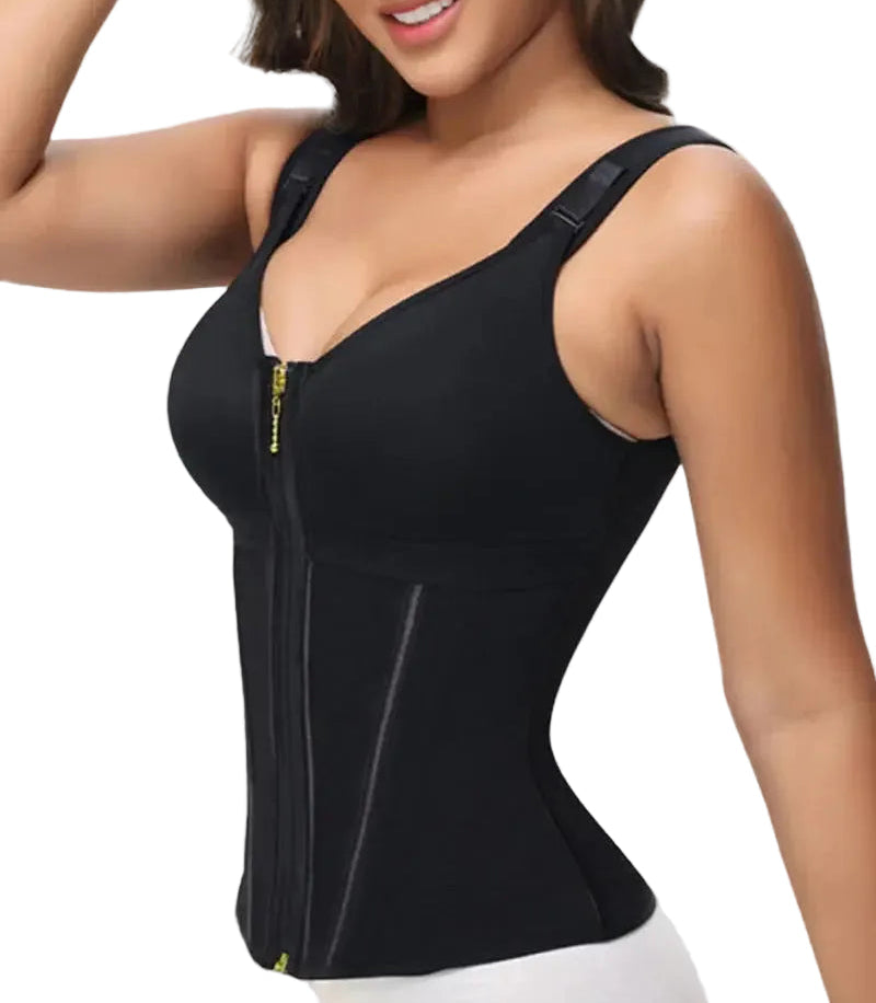 Mayor seguridad y ajuste perfecto con cremallera frontal y corchetes internos